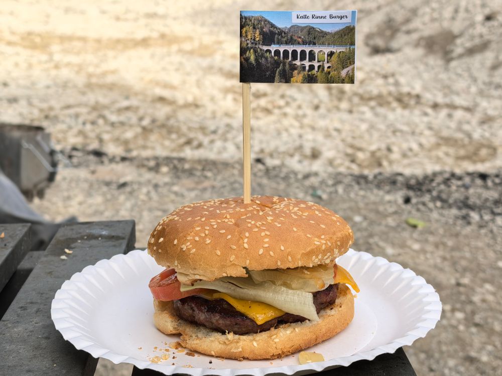 Der Burger "Kalte Rinne" - benannt nach dem Viadukt "Kalte Rinne" am Semmering, an dem zur Zeit fleißig renoviert wird, war ein kulinarischer Höhepunkt auf der Baustelle. Dass ein Ort so viel Inspiration und Schöpfergeist hervorbringen kann, ist einzigartig. Alle Beteiligten haben sich nicht mit nur einem Burger "Kalte Rinne" zufrieden gegeben. Zum Glück war für den großen Hunger vorgesorgt. Wer gut arbeitet, muss auch gut essen. ;-)